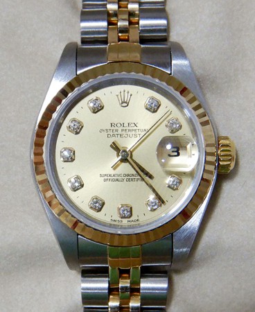 롤렉스 콤비 여성용모델은 중고로 입고된 오리지널 다이아 세팅 정품모델입니다.