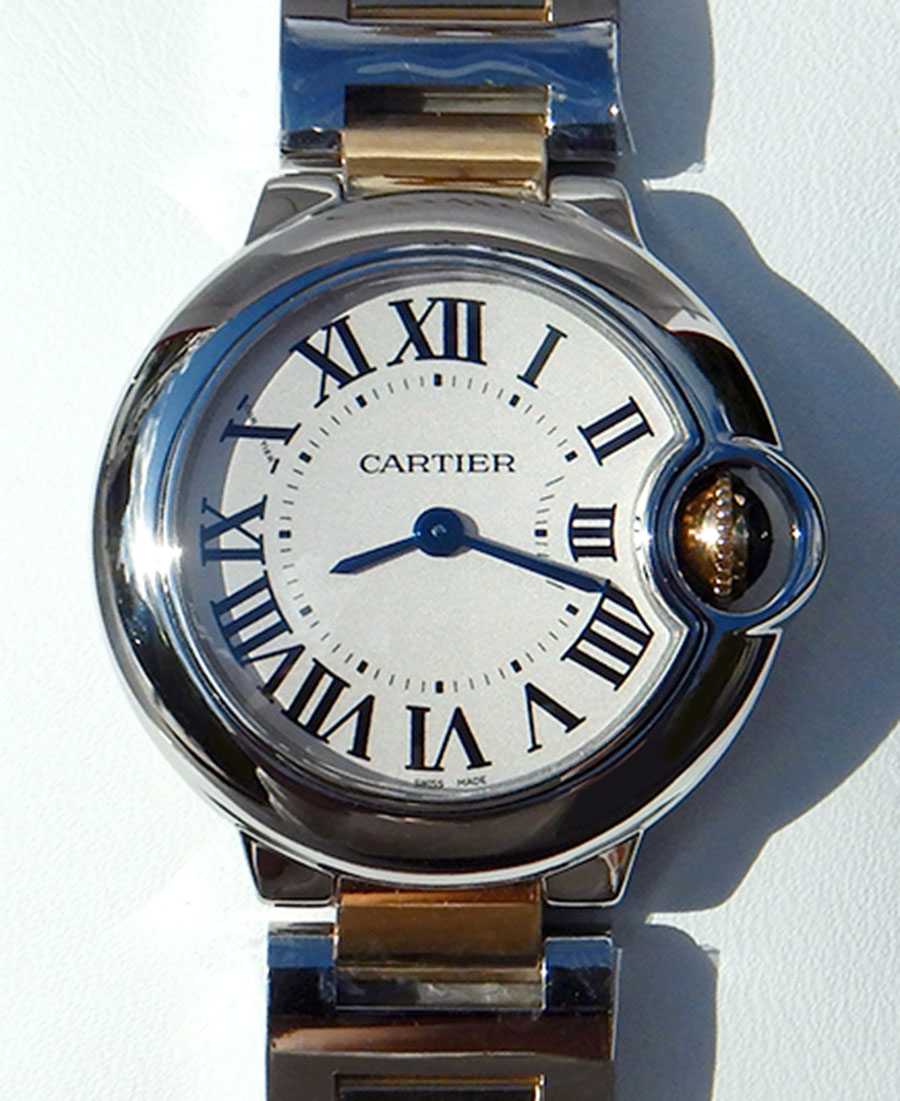 공처럼 통통 튀는 느낌의 발롱 블루 드 까르띠에 시계입니다.