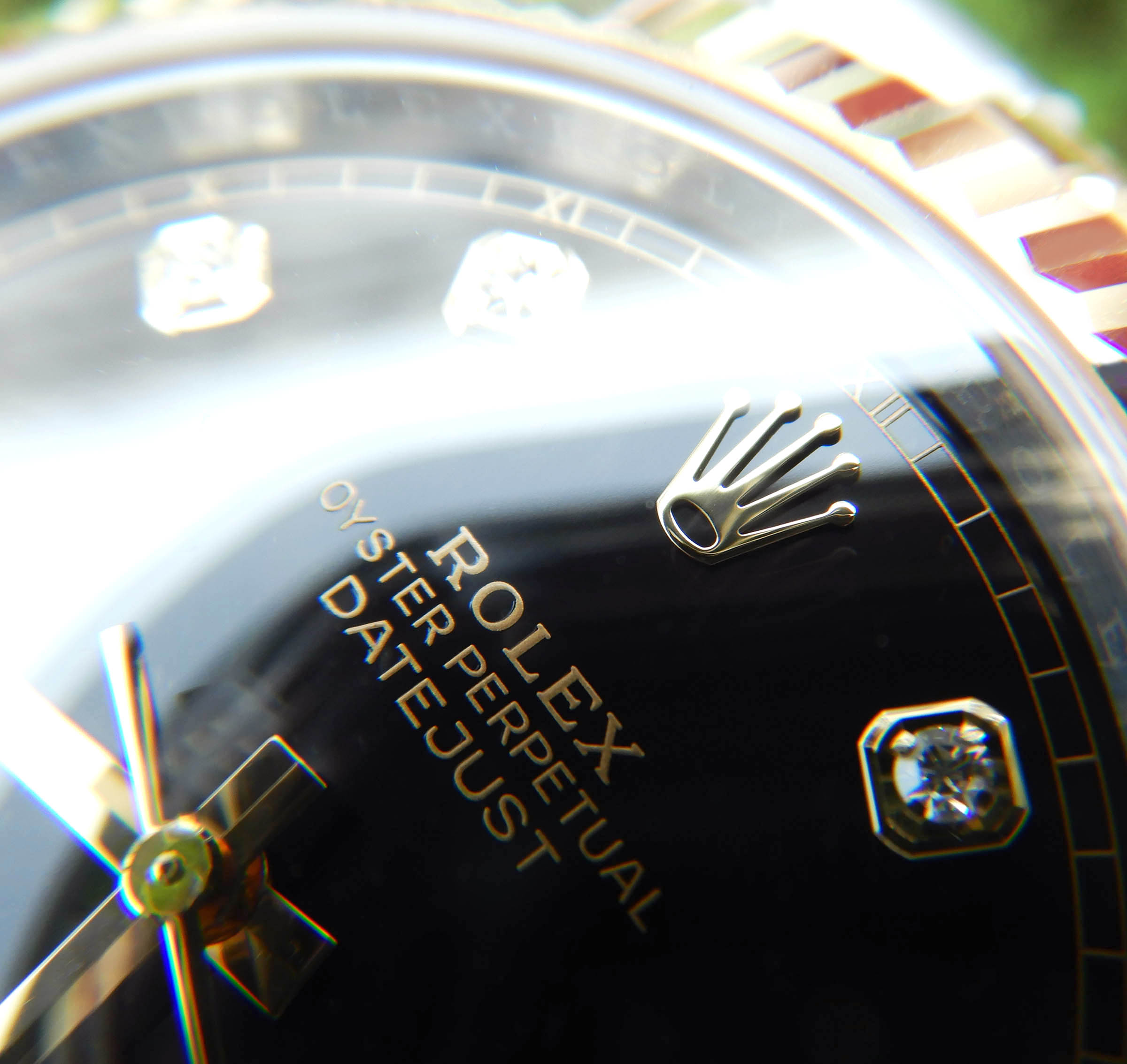 브라이트 블랙 다이얼 속 10개의 다이아몬드 시각표시와 18K 옐로골드 소재의 플루티드 베젤이 특징이며,