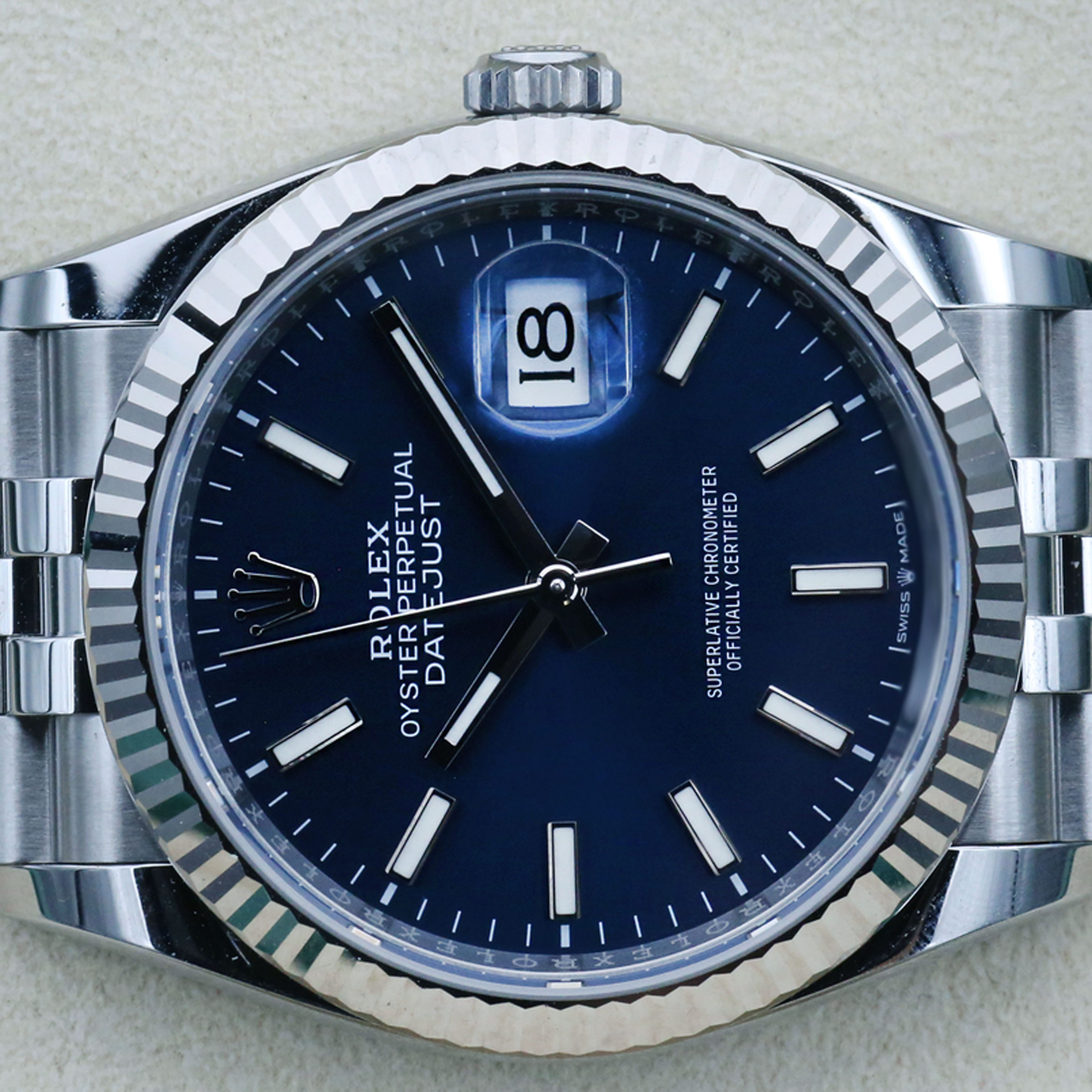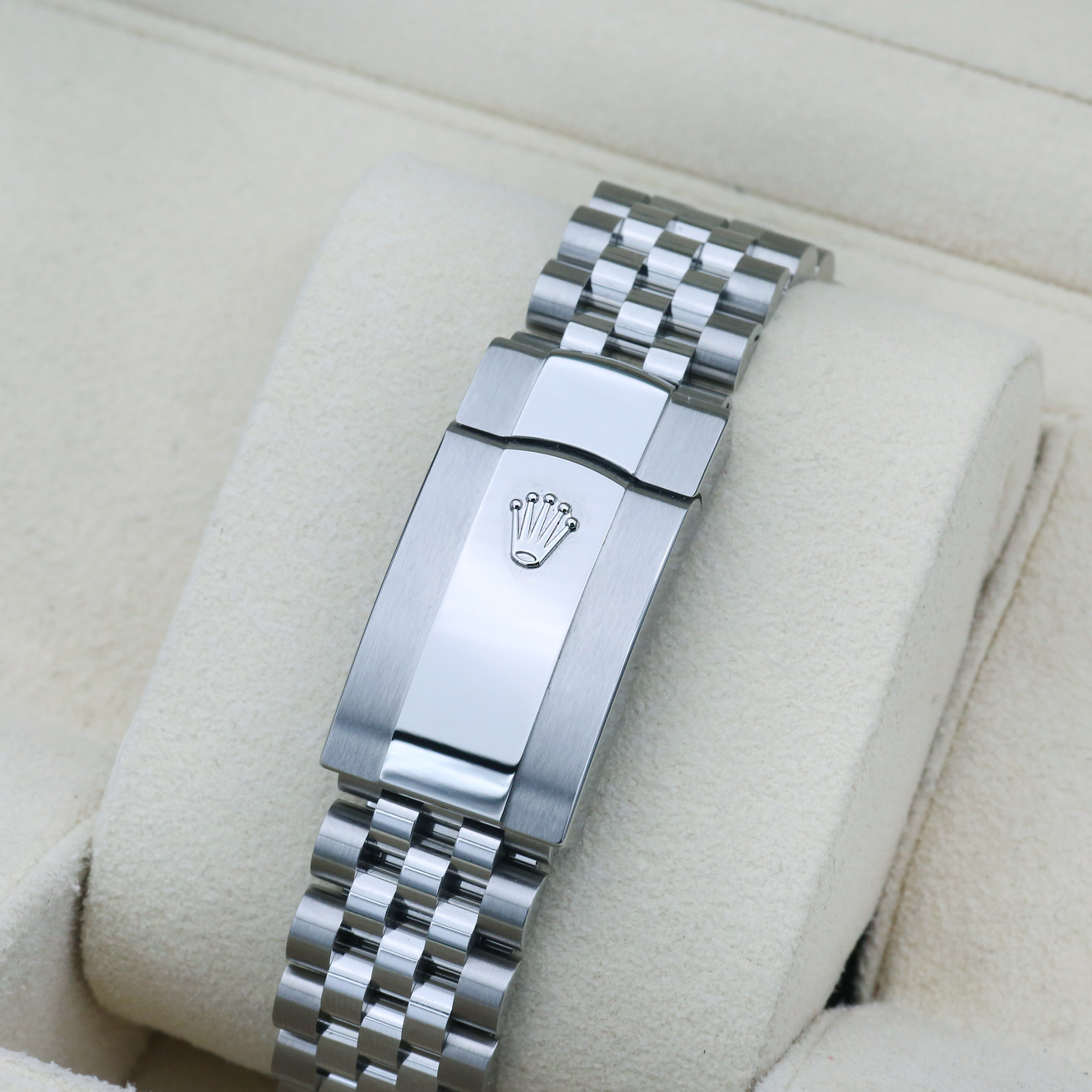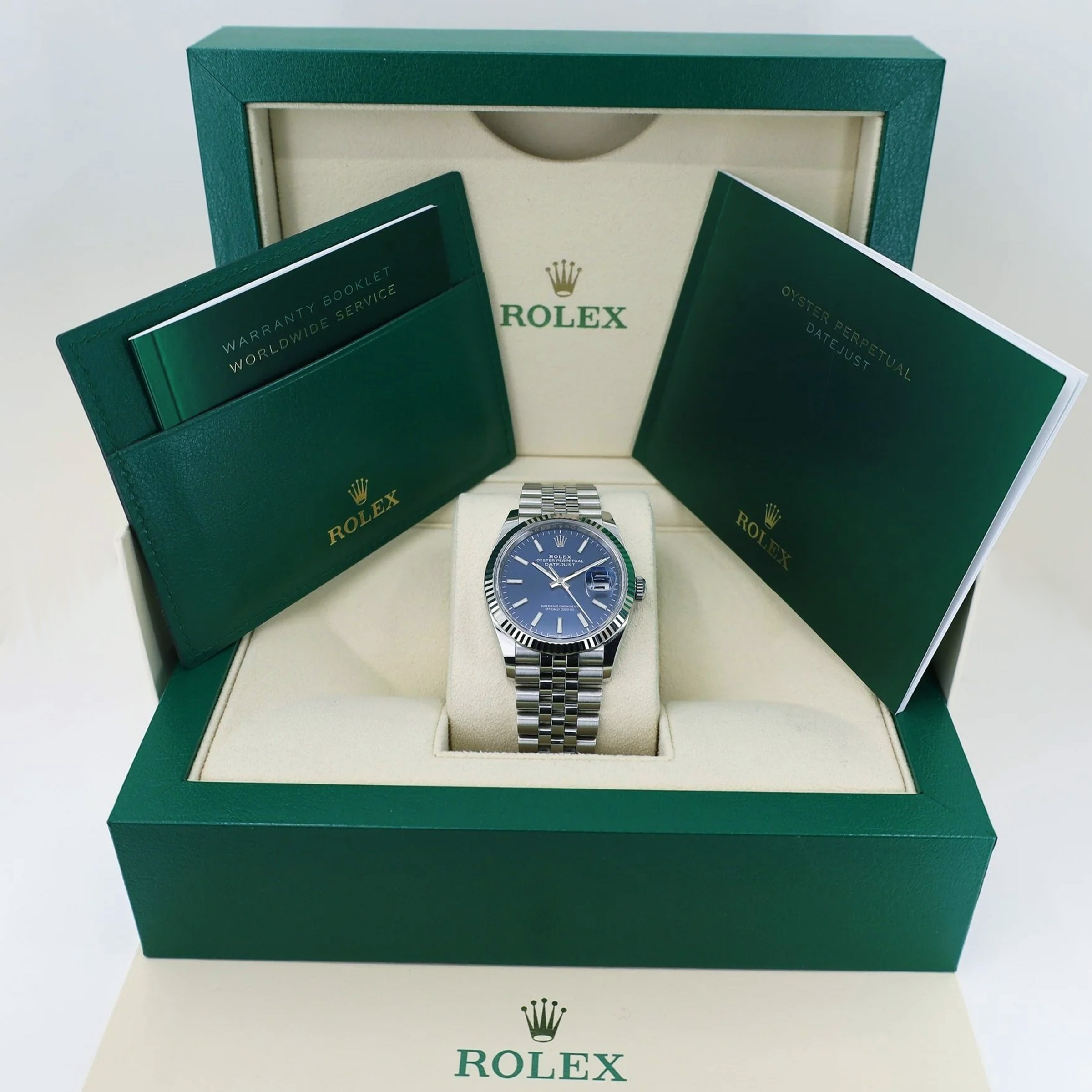 브라이트 블루 다이얼과 18K 화이트골드를 갖춘 롤렉스 데이저스트 36 청판 126234 모델입니다.섬세하게 빛나는 개성있는 블루 색상의 브라이트 블루 다이얼과 바 인덱스 시각표식이 특징이며,어두운 곳에서도 가독성이 좋은 크로마라이트 야광 시각표시 기능으로 가독성을 높였습니다.롤렉스 매뉴팩처 3235 칼리버가 탑재되어, 약 70시간의 파워리저브 기능이 있습니다.트윈록 2중 방수 시스템으로 수심 100m 방수기능을 보장하며,브레이슬릿은 5열의 링크가 사용된, 쥬빌레 브레이슬릿이 장착되어 유연하고 편안한 착용감을 느껴보실 수 있습니다.폴딩 오이스터 클라스프가 사용되어 브레이슬릿 길이를 약 5mm 정도 늘이거나 줄일 수 있는 이지링크 기능도 포함되어 있습니다. 롤렉스 데이저스트 36 청판 126234 모델은 예약후 빅펀샵 오프라인매장에서 구입이 가능합니다.