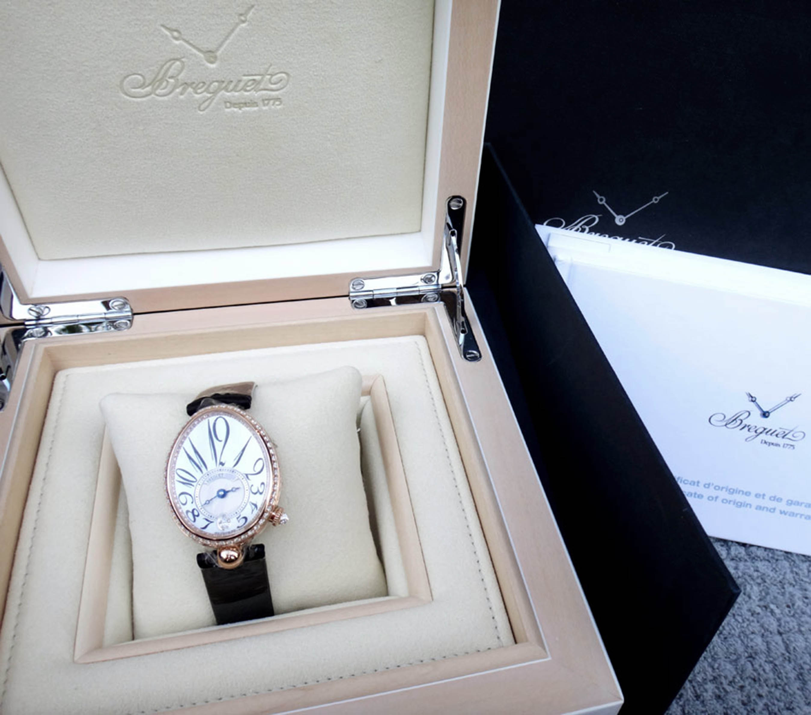 브레게 Breguet레인드네이플 8918BR/58/864/D00D Reine de Naples18K 핑크골드 & 다이아몬드 & 새틴 18k Pink Gold & Diamonds & Satin자개 다이얼 Mother of pearl Dial36.5 x 28.45mm자동 Automatic컨디션 100%케이스/보증서