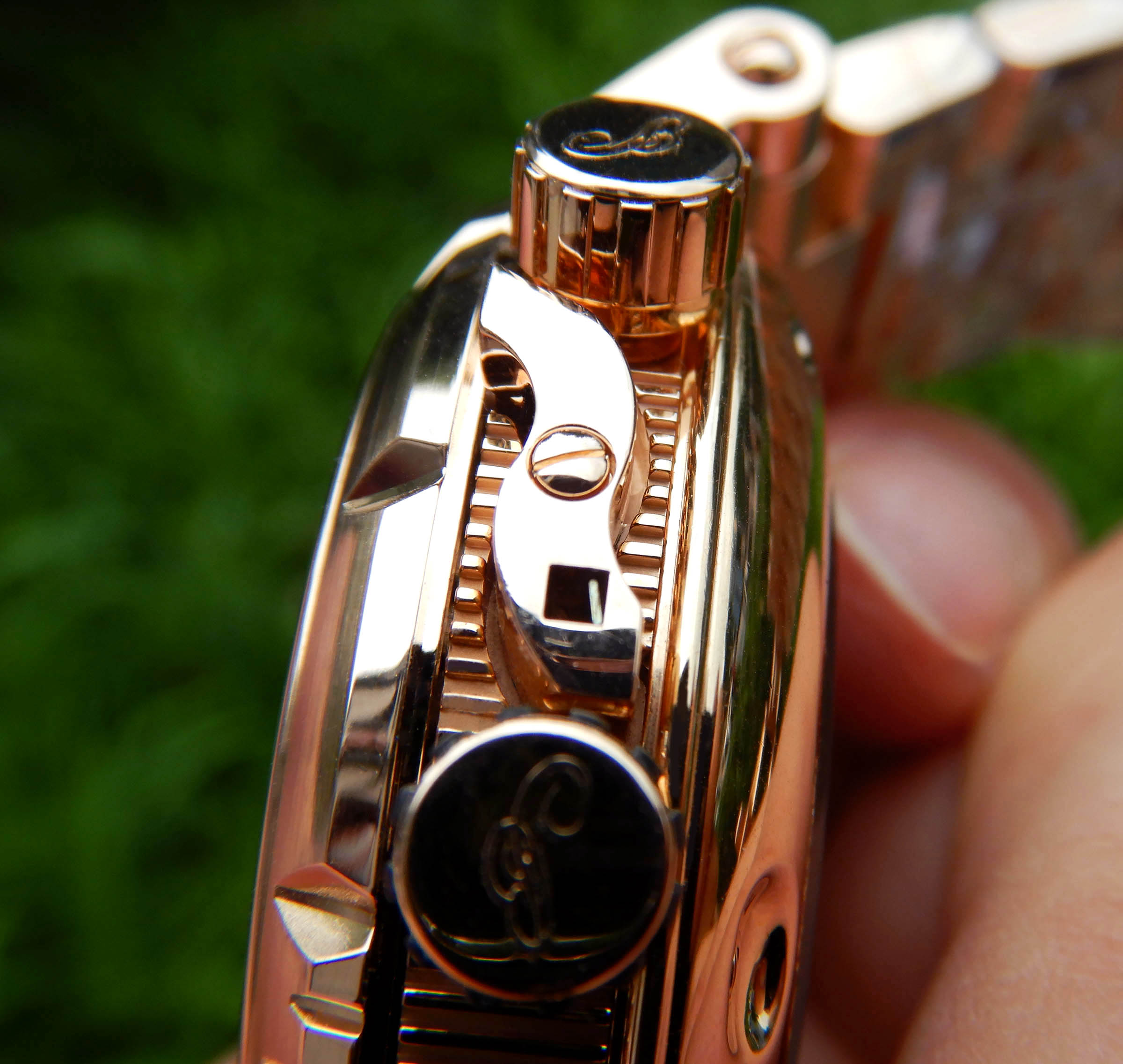 각도에 따라 입체감 있게 표현되는 기요쉐 디자인이 돋보이는 브레게 마린 로얄 5847BR 모델입니다.블랙 로듐 다이얼의 중앙과 핸즈는 특수 형광 소재로 코팅되어 깊은 심해에서도 시간확인을 할 수 있습니다. 무브먼트는 브레게 519R 칼리버가 세팅되어, 36개의 보석, 14400vph 속도, 약 45시간의 파워리저브를 제공합니다. 스크래치 방지 사파이어 크리스탈 글래스가 사용되어 강한 내구성을 지녔으며, 투명한 케이스백이 특징입니다.케이스의 두께 17.45mm로 남성용 사이즈에 맞게 견고하게 제작되었으며, 수심 300미터 방수 기능을 제공합니다.시, 분, 초, 날짜 알람 파워 리저브 인디케이터 기능을 제공하며, 현재는 브레게 본사에서 생산이 중단 되어,더욱 희소해진 브레게 마린 로얄 5847BR 모델은 예약후 빅펀샵 오프라인 매장에서 구입이 가능합니다.