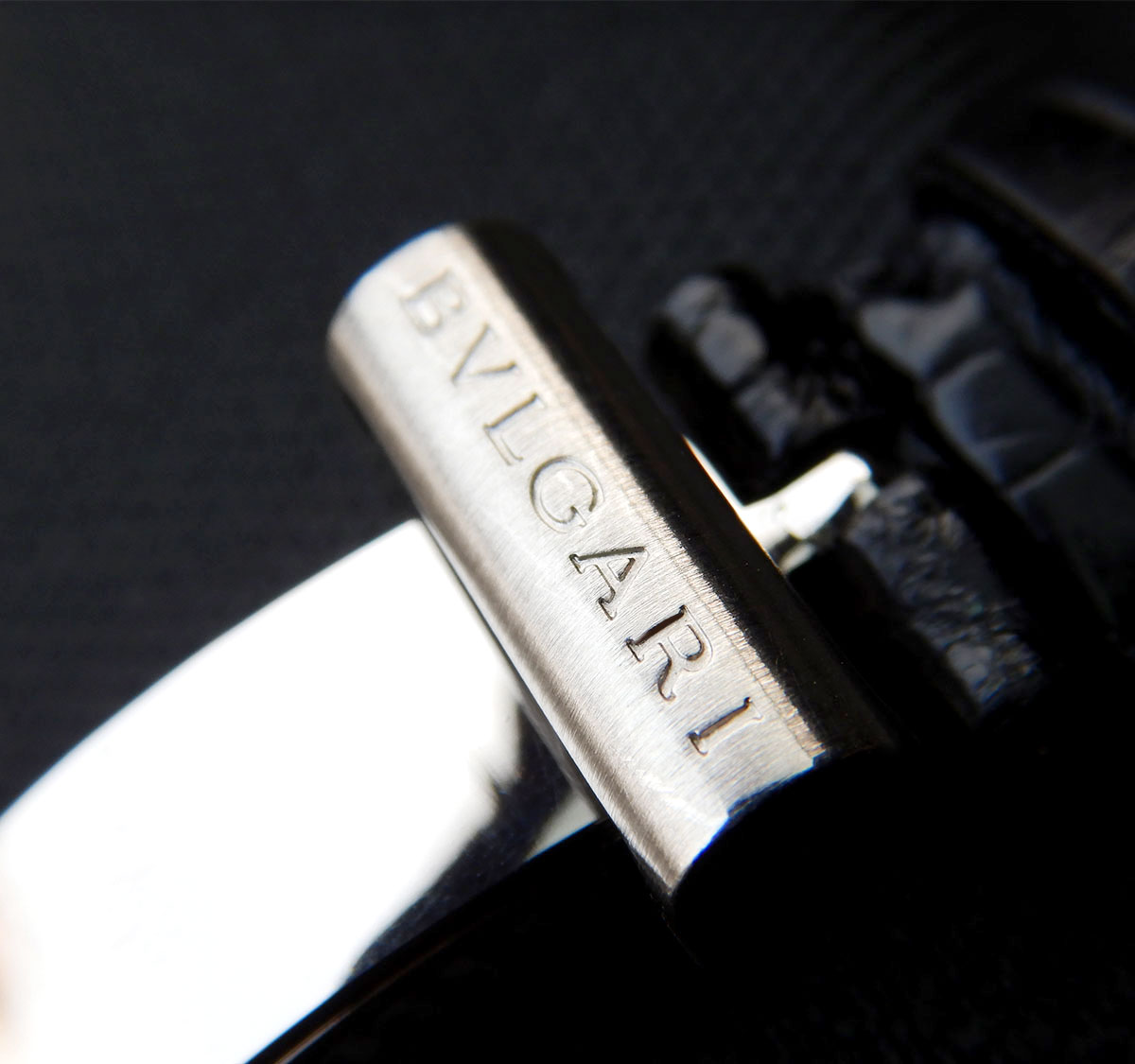 둥근 베젤에는 "BVLGARI BVLGARI"조각이 새겨 져 있습니다.