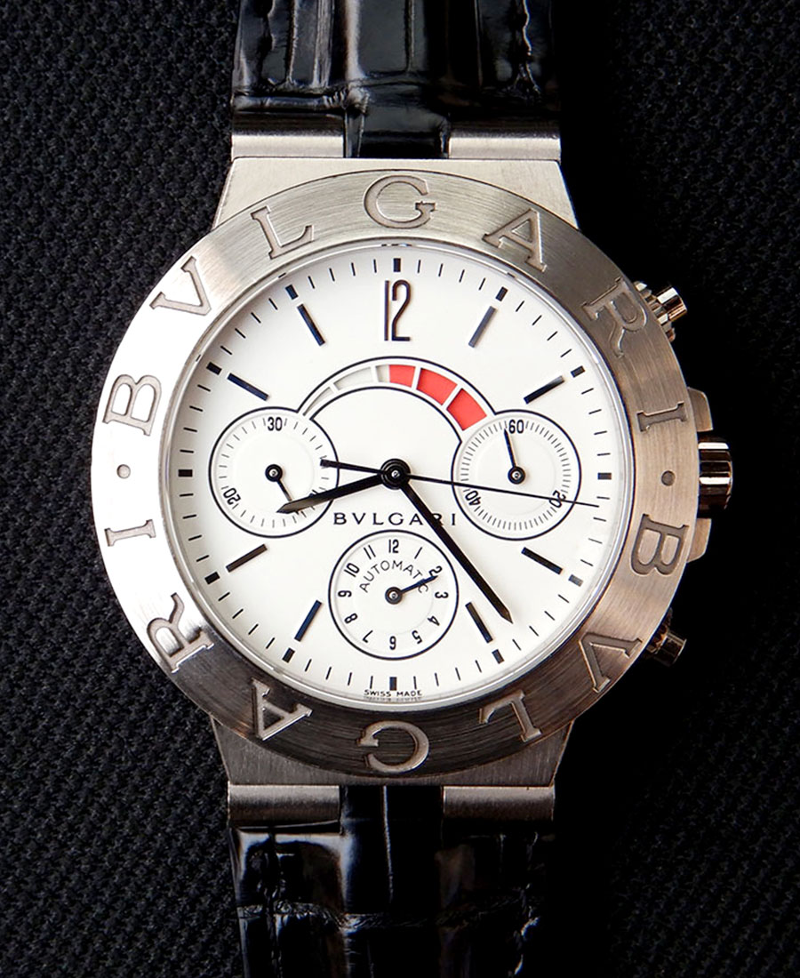 불가리 불가리 디아고노 레가타 크로노 그래프는 전체바디가 18 캐럿 화이트 골드이며,