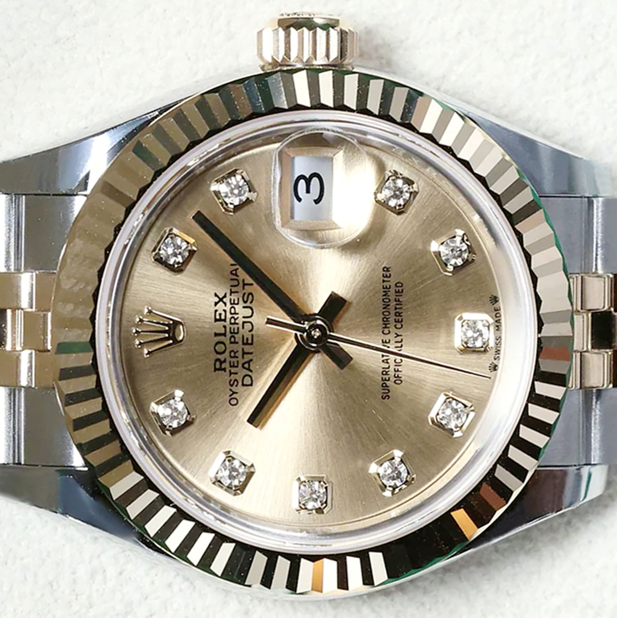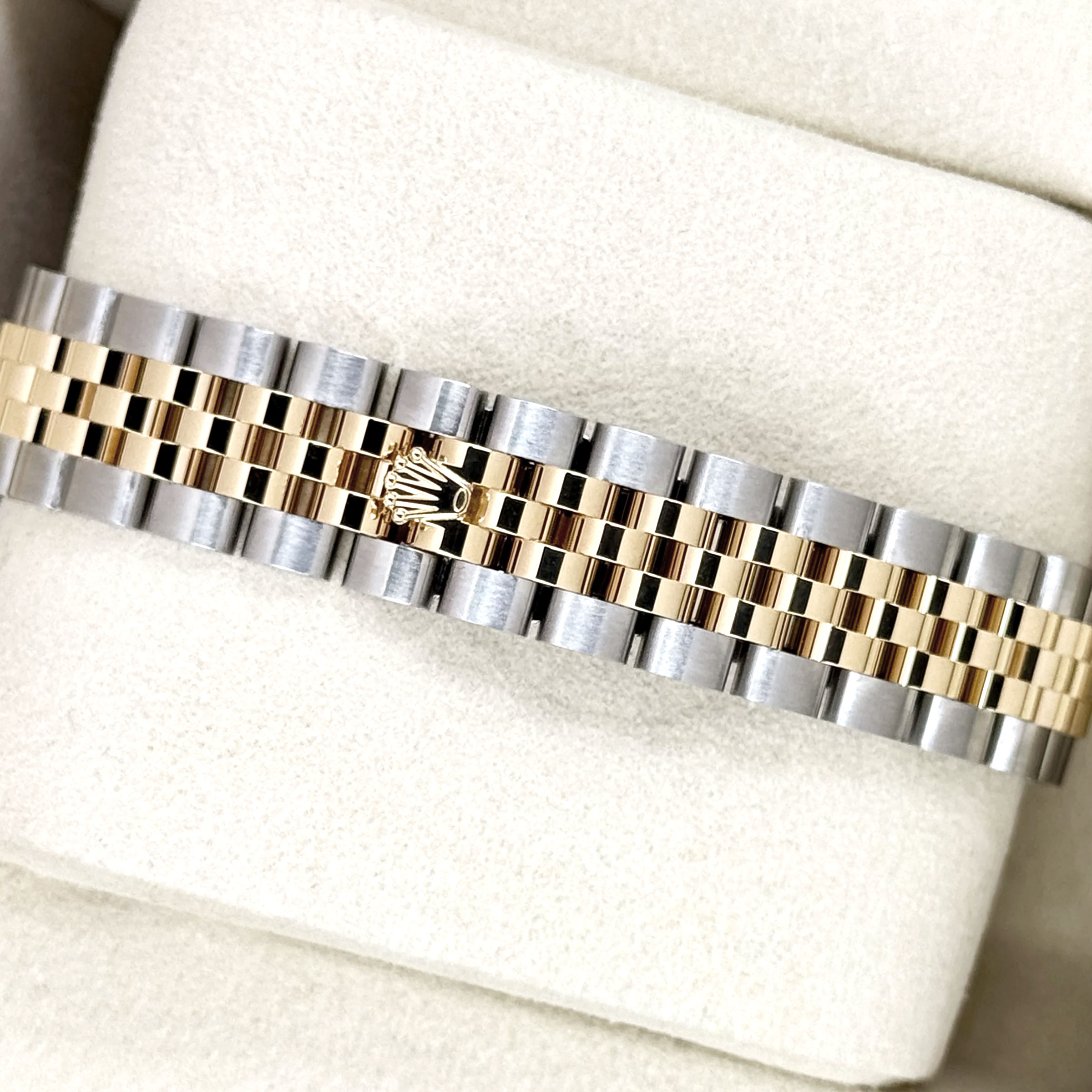 10p 다이아와 샴페인 다이얼의 조화가 아름다운 여성용시계 롤렉스 데이저스트 28 279173 입니다.케이스 측면과 러그에서 빛나는 빛과 함께 10P 다이아몬드의 영롱함이 감도는 아름다운 디자인이 시선을 사로잡으며,18K 옐로골드 소재의 톱니모양 플루티드 베젤, 10P 다이아 샴페인 다이얼로 섬세하고 우아한 분위기를 연출합니다.롤렉스 매뉴팩처 2236 칼리버로 약 55시간의 파워리저브 기능, 수심 100m 방수기능을 보장하며,5열의 쥬빌리 브레이슬릿으로 유연하고 편안한 착용감을 느껴보실 수 있습니다.예물용으로 가장 많이 쓰이는 옐로콤비 모델 중 하나로, 특히 계절을 타지않아 오랫동안 착용이 가능합니다.롤렉스 데이저스트 28 279173은 예약후 빅펀샵 오프라인 매장에서 구입이 가능합니다.
