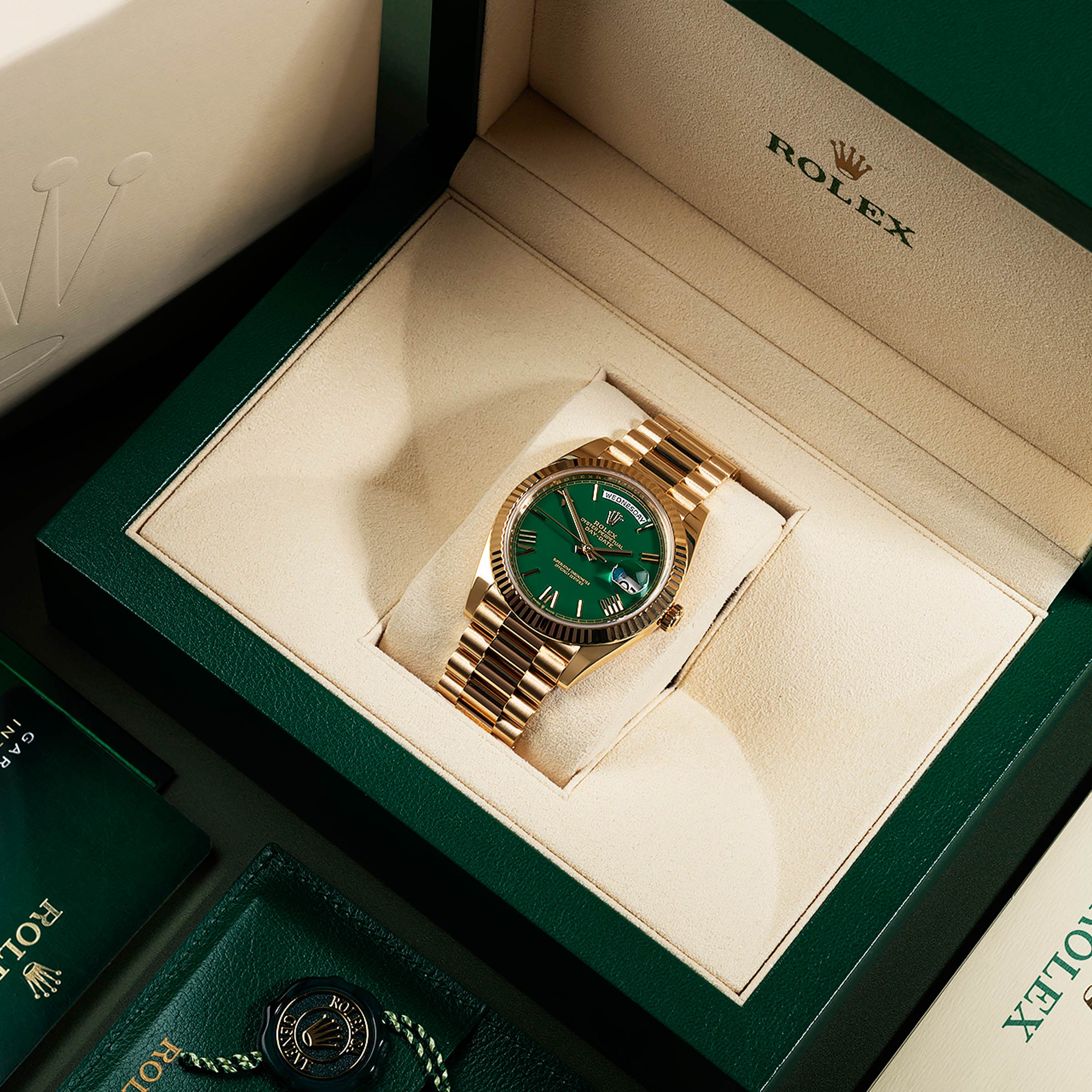 롤렉스 데이데이트 40 그린 옐로골드 228238