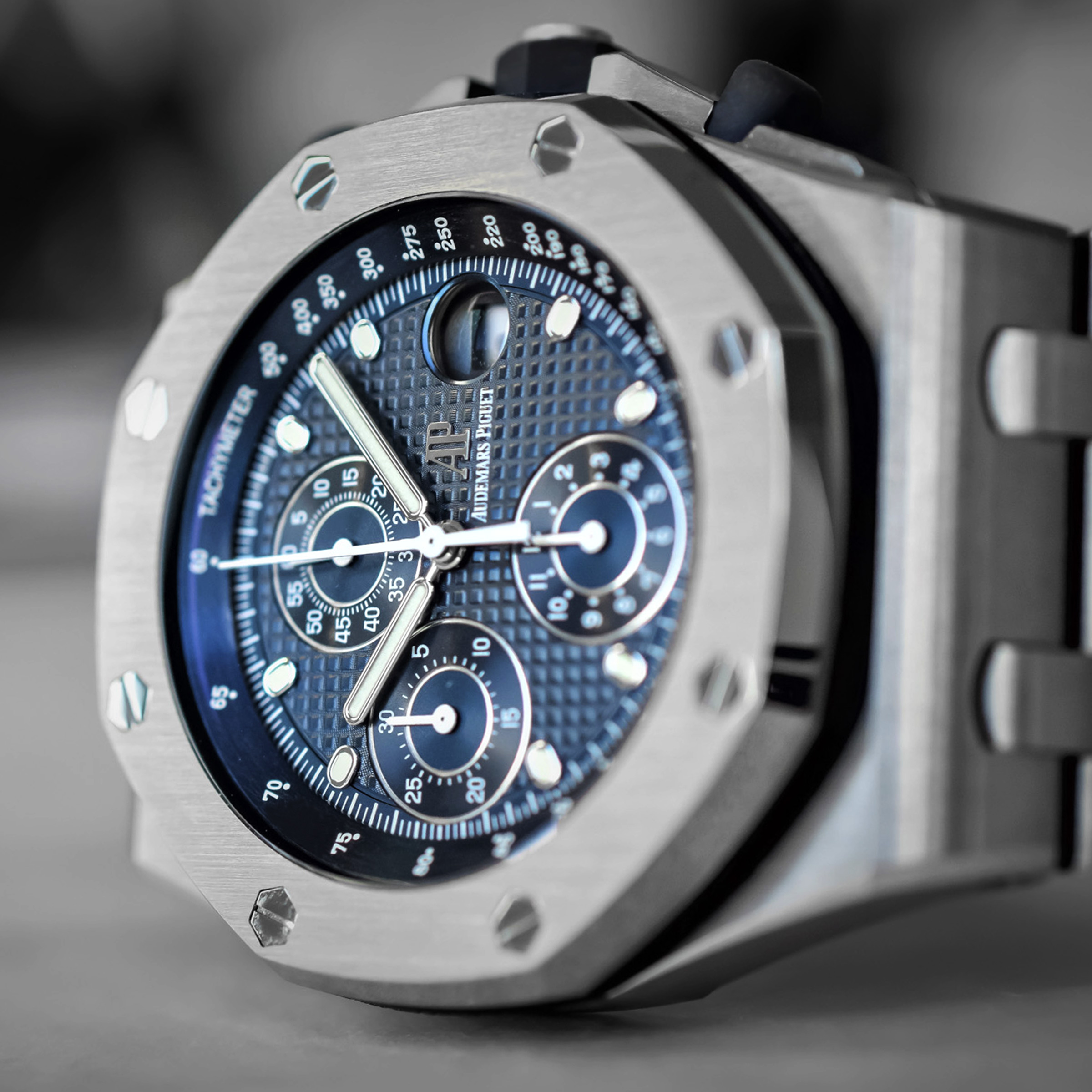 최초의 로얄오크 오프셔 시리즈를 상기시키는 오데마피게 25주년 모델 로얄오크 오프셔 26237ST 모델입니다.2018년 25주년 리 에디션 모델로 출시되어, 최초의 로얄오크 오프셔를 담고 있는 디자인이 인상적입니다.로얄오크의 상징인 태피스리 다이얼은 1993년 모델과 동일한 쁘띠 태피스리 패턴으로 장식되었습니다.각 핸즈의 끝이 둥글고 뭉특한데도 시안성이 훌륭하며 라인을 따라 발광처리가 되어 어두운곳에서도 가독성이 좋은 야광핸즈가 사용되었습니다.다이얼을 채우는 3개의 그래프는 12시 방향 60분 단위의 시간을, 9시 방향은 30분 단위, 6시 방향은 12시간을 나타냅니다.오데마피게 AP 로고는 3시 방향 날짜 창 옆에 위치하며, 전체적으로 시각적인 균형이 좋은 모델입니다.42mm의 직경 사이즈로 아름다우면서도 스포티한 감각도 느껴지며, 매력적이고 스타일리시한 연출이 가능합니다.59개의 보석과 365개의 부품이 사용된 3126/3840 무브먼트 칼리버로 약 50시간의 파워리저브 기능과 수심 100m 방수기능을 제공합니다.로얄오크 25주년 모델 오데마피게 로얄오크 오프셔 26237ST 모델은 예약후 빅펀샵 오프라인 매장에서 구입이 가능합니다.