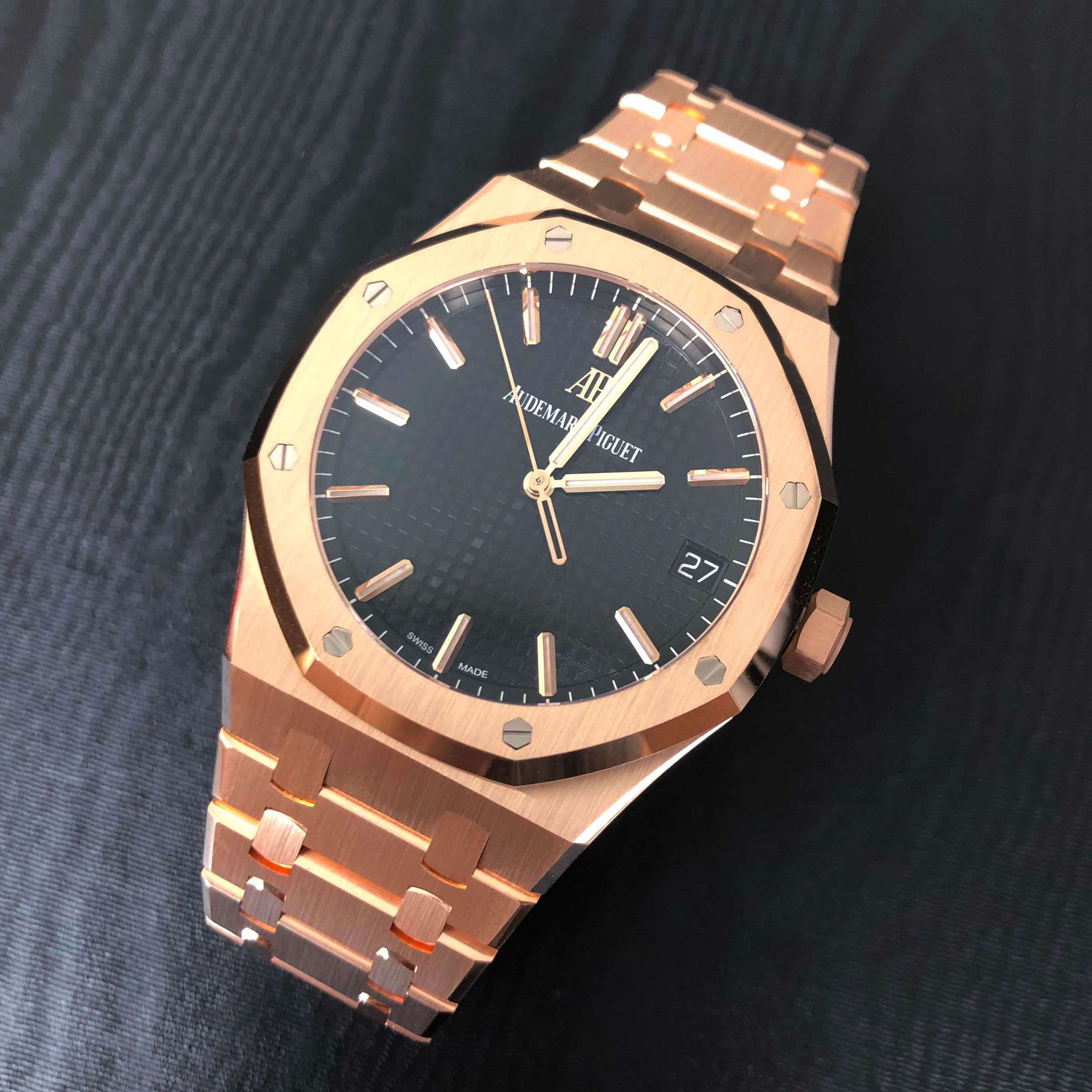 오데마피게 Audemars Piguet로얄오크 15500OR.OO.1220OR.01 Royal Oak18K 핑크골드 18K Pinkgold블랙 다이얼 Black Dial41mm자동 Automatic컨디션 100%케이스/보증서