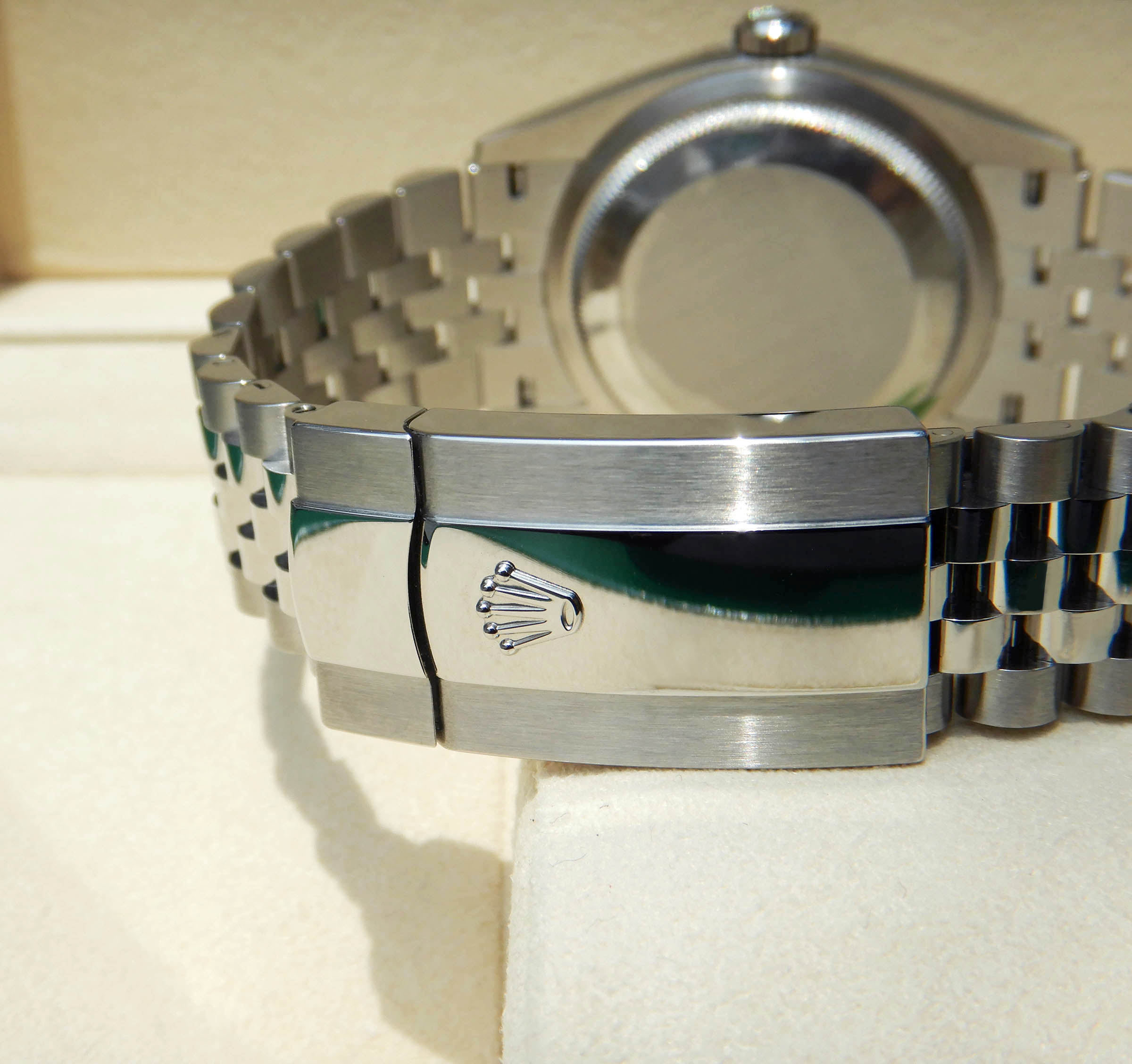 편안한 착용감과 편의성을 갖춘 이지링크 기능이 포함된 5열 링크 쥬빌리 브레이슬릿, 36mm의 케이스 직경,