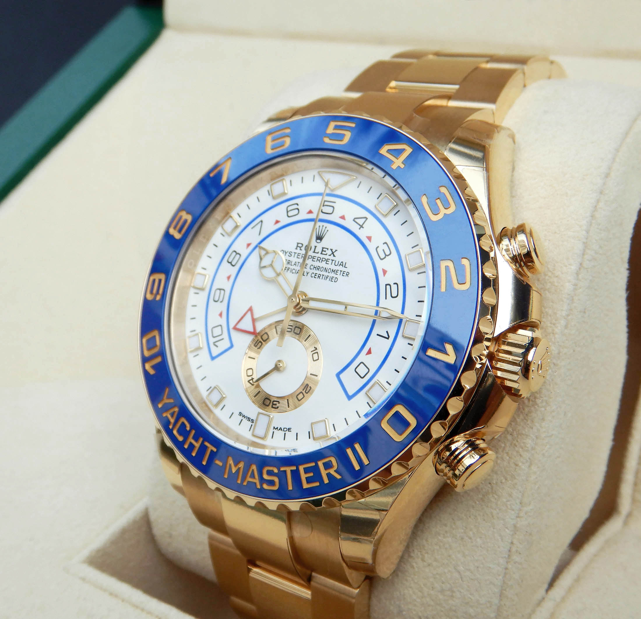 스포츠 매니아들의 꾸준한 사랑을 받고 있는 롤렉스 요트마스터2 116688 Yacht Master II 입니다.요트마스터2는 롤렉스 프로페셔널 모델 특유의 개성을 지닌 새로운 다이얼과시계 바늘을 갖추고 있으며, 더욱 향상된 가독성과 선명한 디자인을 자랑합니다.새로운 다이얼의 12시 시각 표식은 삼각형으로, 6시 시각 표식은 사각형으로 디자인되었으며,또한, 어두운곳에서 시계 사용자의 가독성을 위한 야광처리, 양방향 회전 링 코멘드 베젤이 장착되었습니다.베젤과 카운트기능을 담은 설계 자체는 매우복잡하지만, 사용하기에는 간편하며,18캐럿 옐로골드 소재의 견고함과 편암함을 동시에 자랑하는 오이스터 브레슬릿이 장착되었습니다.4161 무브먼트로 약 72시간의 파워리저브 기능을, 트리플록 잠금장치를 통해 수심 100m 방수기능을 제공합니다.특히, 4161 무브먼트는 35,000 시간이 넘는 개발 과정의 결과물로 총 360개의 부품으로 이루어져있습니다.사계절을 전혀 타지않으며, 업무용, 미팅, 스포츠활동, 여행지에서 착용하기 좋으며,롤렉스 요트마스터2 116688은 예약후 빅펀샵 오프라인 매장에서 상담 및 구입이 가능합니다.