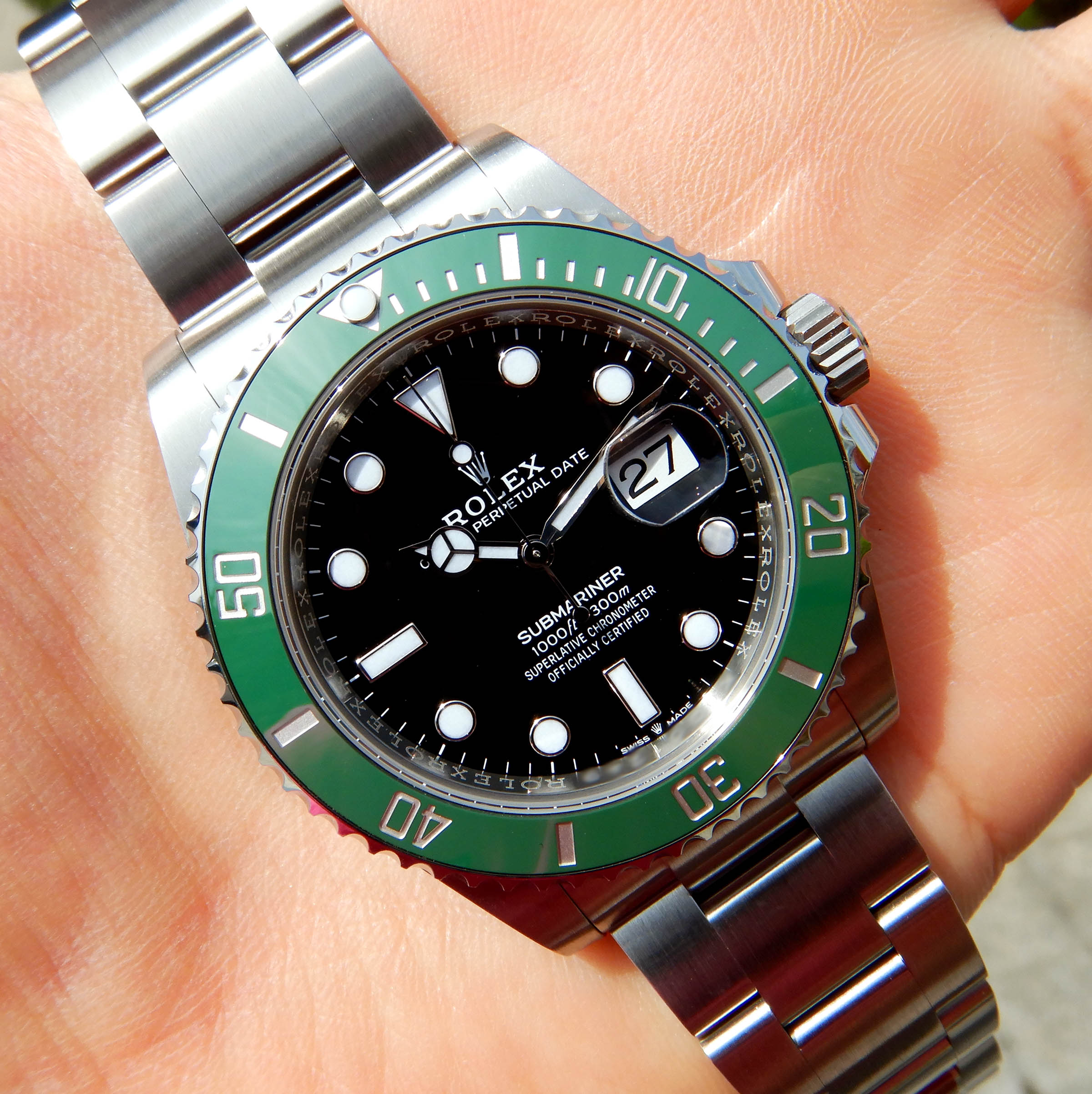 블랙, 화이트, 그린의 조화로 스타벅스로 불리고 있는 롤렉스 서브마리너 126610LV 입니다.서브마리너는 잠수를 위한 다이버 워치로 수심 300m의 방수기능을 지닌, 잠수에 특화된 모델 입니다.60분 눈금이 새겨진 세라크롬 회전베젤을 통해 잠수시간을 측정할 수 있으며,부식에 강한 세라믹으로 제작된 그린 세라크롬 회전 베젤디스크는 긁힘에 강한 내구성을 자랑합니다.12시 방향 화살표 모양의 야광캡슐로 어두운 심해 환경 속에서도 가독성이 좋으며,톱니 모양의 홈이 새겨진 세라크롬 베젤은 물속에서 장갑을 끼고도 쉽게 조작할 수 있게 도와줍니다.약 70시간의 파워리저브로 성능이 업그레이드된 롤렉스 매뉴팩처 3235 칼리버가 세팅되었으며,기존 116610LV의 40mm 모델의 서브마리너 크기에서 41mm로 커져, 조금 더 견고한 모습을 지니게 되었습니다.또한, 기존 116610LV 모델의 그린 다이얼에서 블랙 다이얼 색상으로 변경되었으며,풀림 방지 기능이 있는 폴딩 오이스터록 세이프티 클라스프, 3열의 넓은 오이스터 브레이슬릿이 사용되었습니다.롤렉스 잠수의 역사를 담고있는 롤렉스 서브마리너 126610LV는 예약후 빅펀샵 오프라인 매장에서 구입가능합니다.